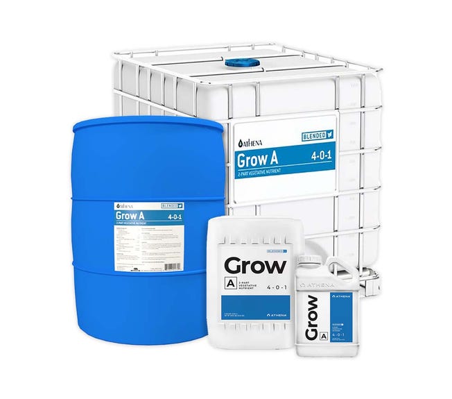 Athena Grow is a straightforward 2-part liquid formula designed for the vegetative growth phase of non-flowering plants. It provides essential nutrients and optimal mineral ratios to support strong, healthy development, including extra nitrogen for lush foliage.