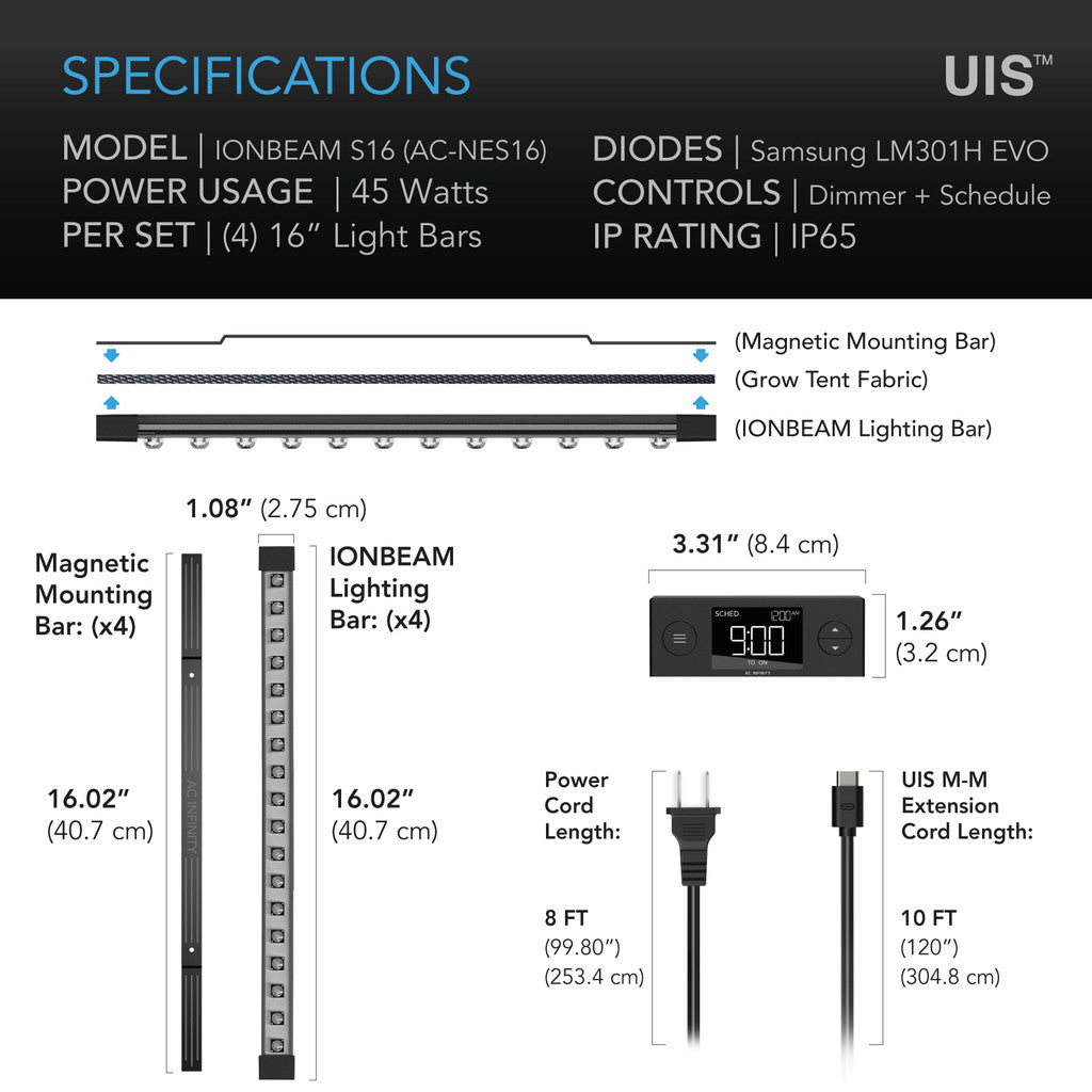 IONBEAM S16, Full Spectrum LED Grow Light Bars, Samsung LM301H EVO, 16-Inch